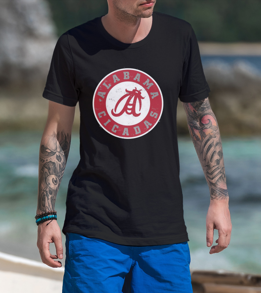 Alabama Cicadas Team Red Emblem With Stylized Bug T-Shirt