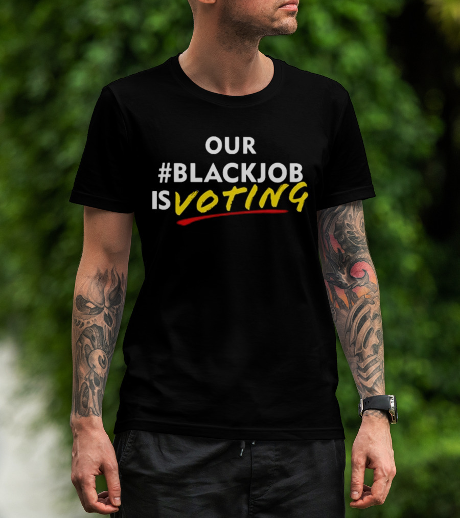 The OUR #BLACKJOB IS VOTING T-shirt is designed for everyday wear and a consistent fit. Fabric is pre-shrunk ring-spun cotton with durable stitching. See the size chart below for exact measurements.