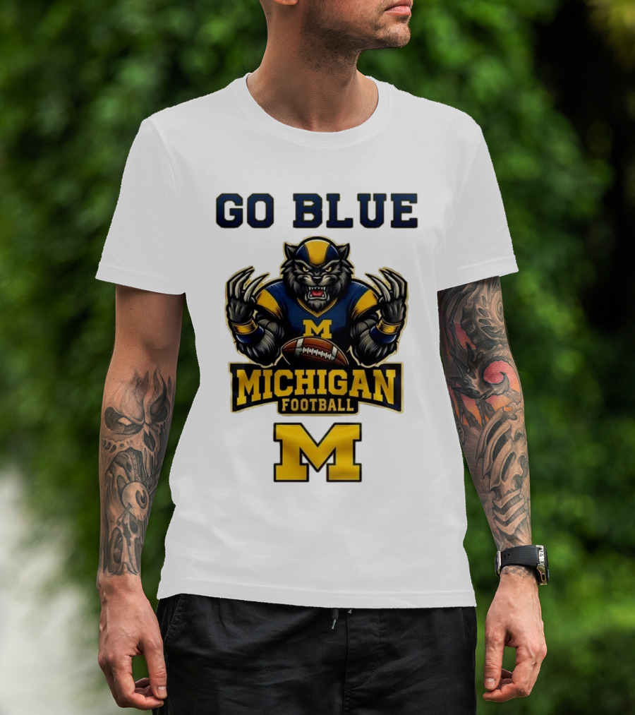 Go Blue Michigan Football Wolverine Mascot M T-Shirt