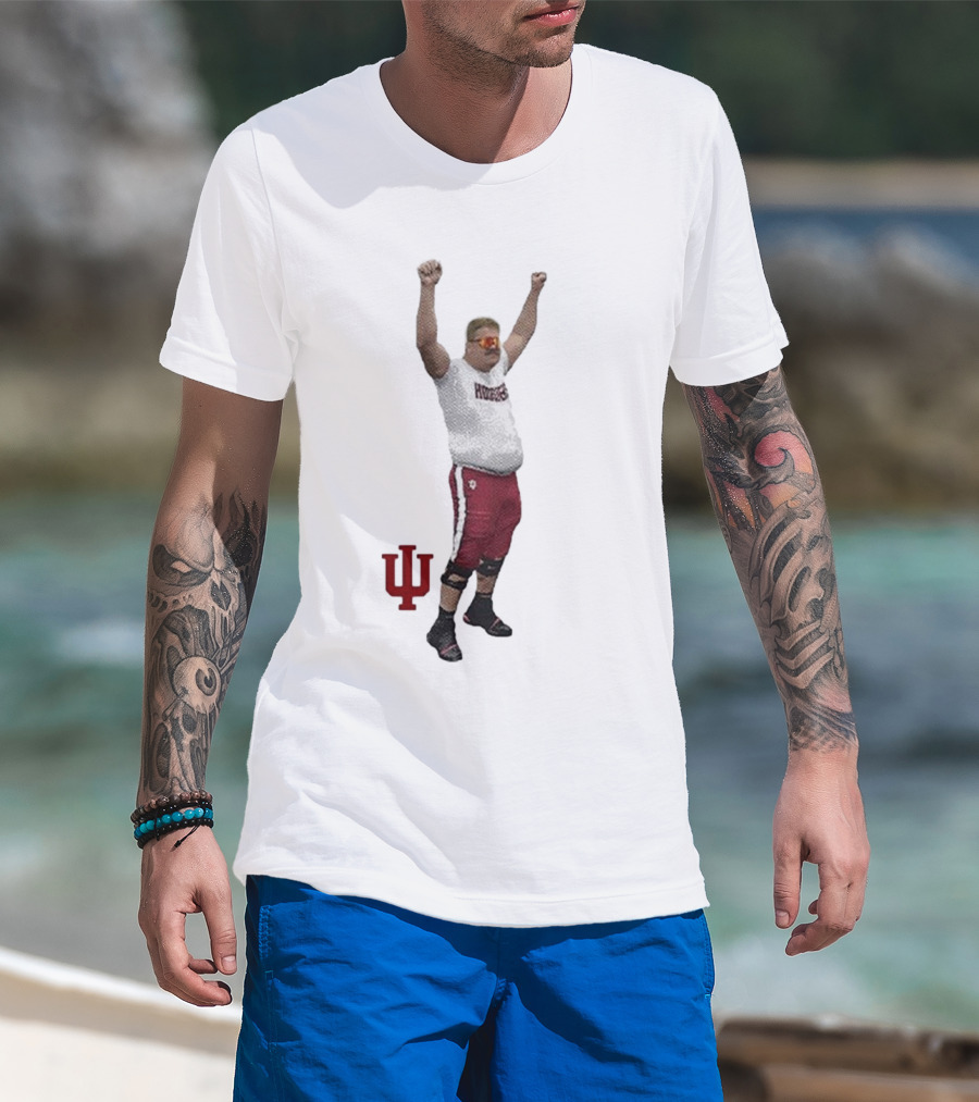 Mike Katic Indiana Hoosiers Football Player Celebration Cartoon IU Logo T-Shirt