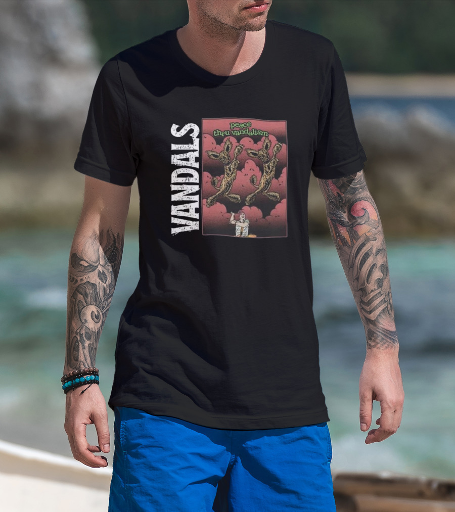 Vandals Peace Thru Vandalism NOFX Dual Skeletons Retro Comic Style T-Shirt
