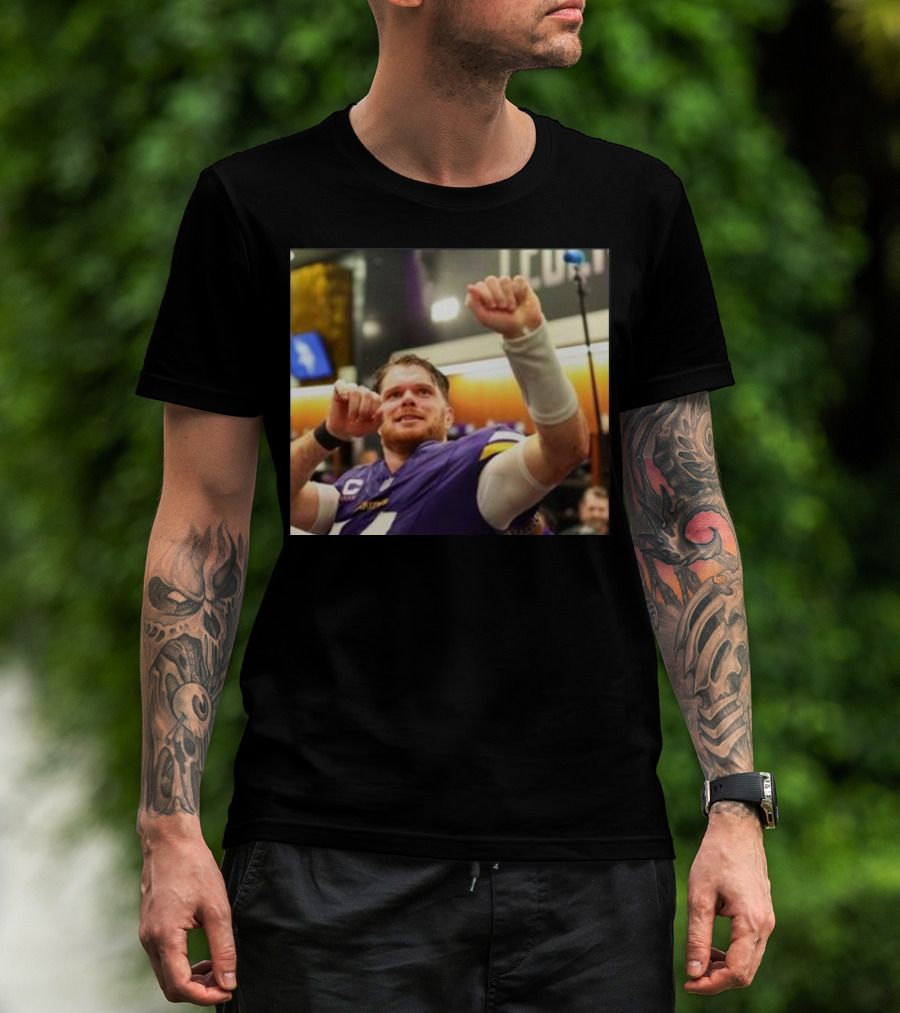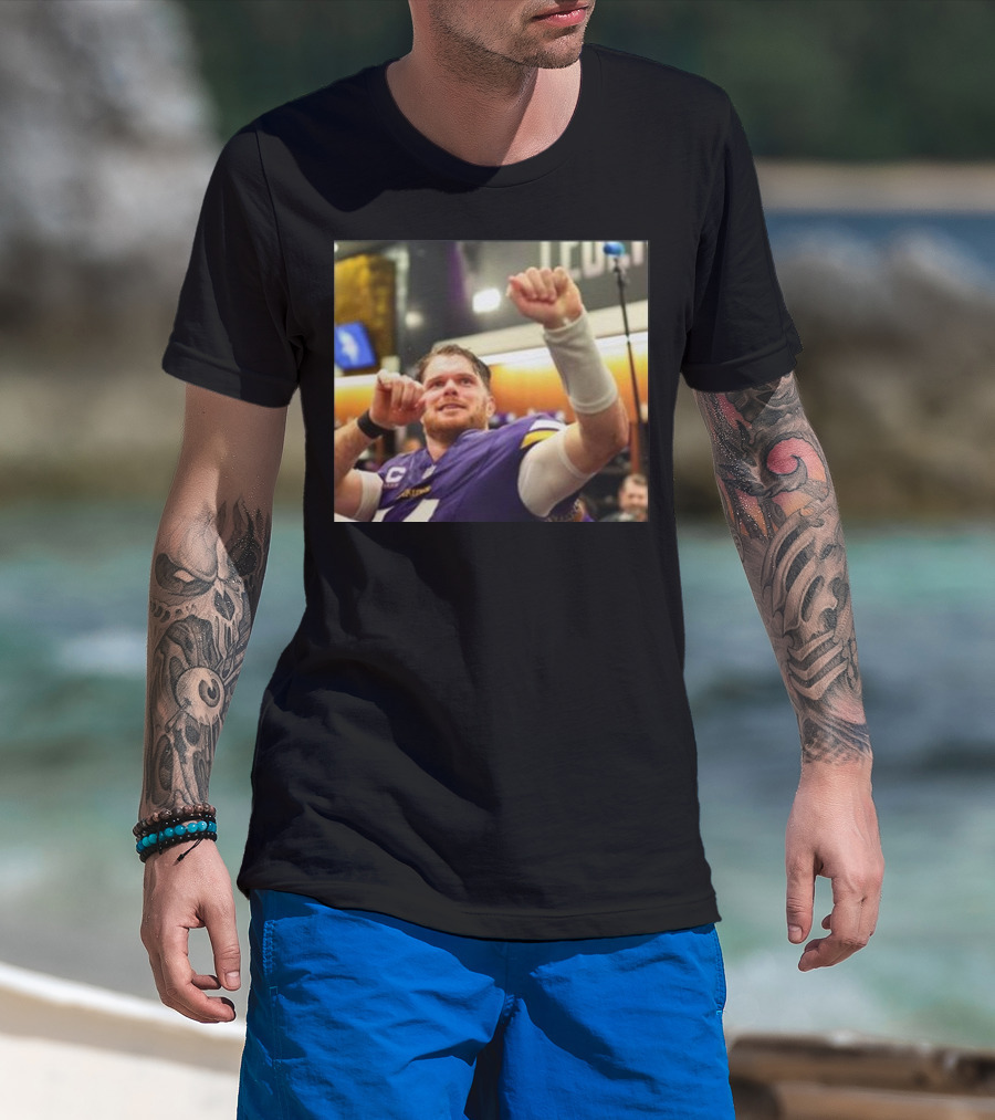 Vikings Locker Room Celebration With Sam Darnold In Jersey T-Shirt