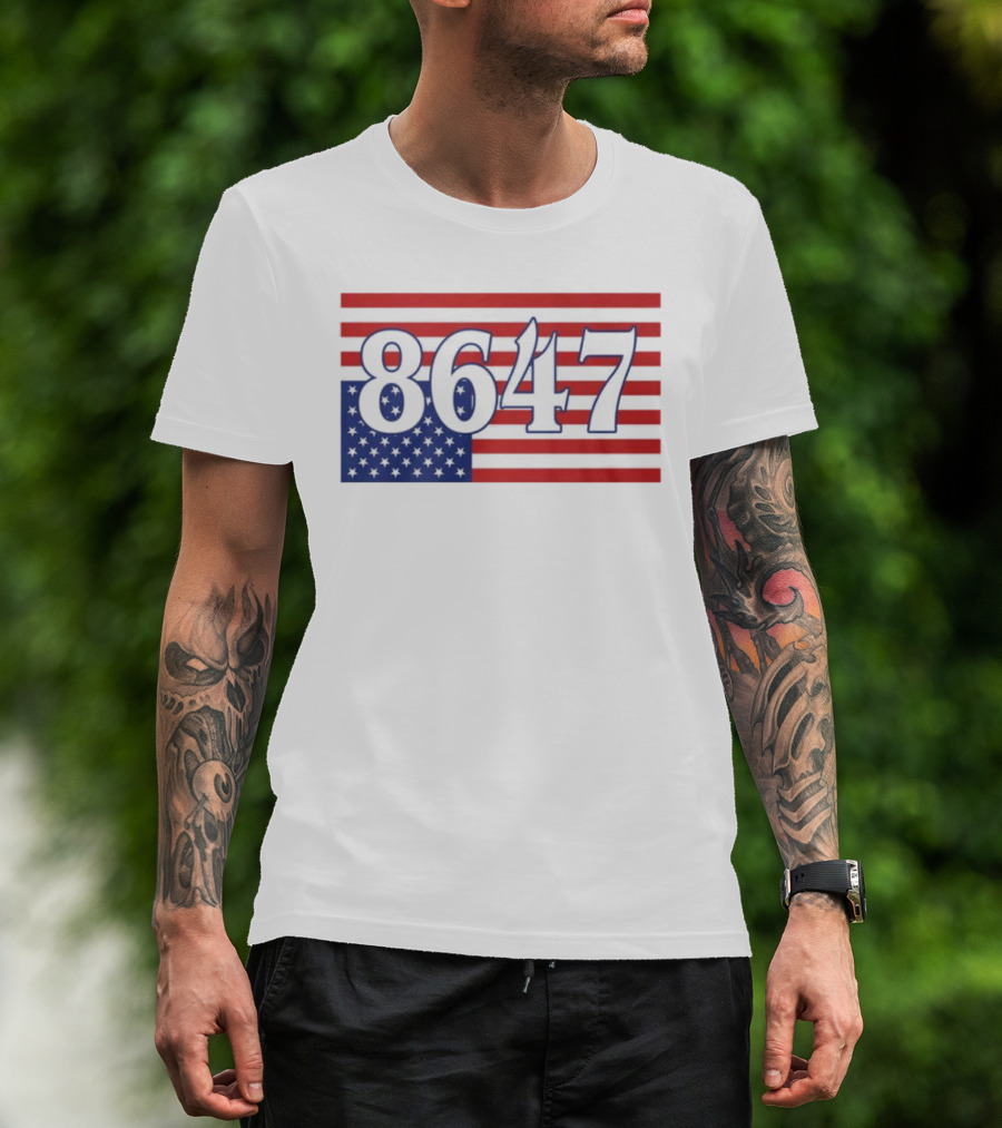 The 8647 American Flag Inverted Red Blue Stripes T-shirt is designed for everyday wear and a consistent fit. Fabric is pre-shrunk ring-spun cotton with durable stitching. See the size chart below for exact measurements.