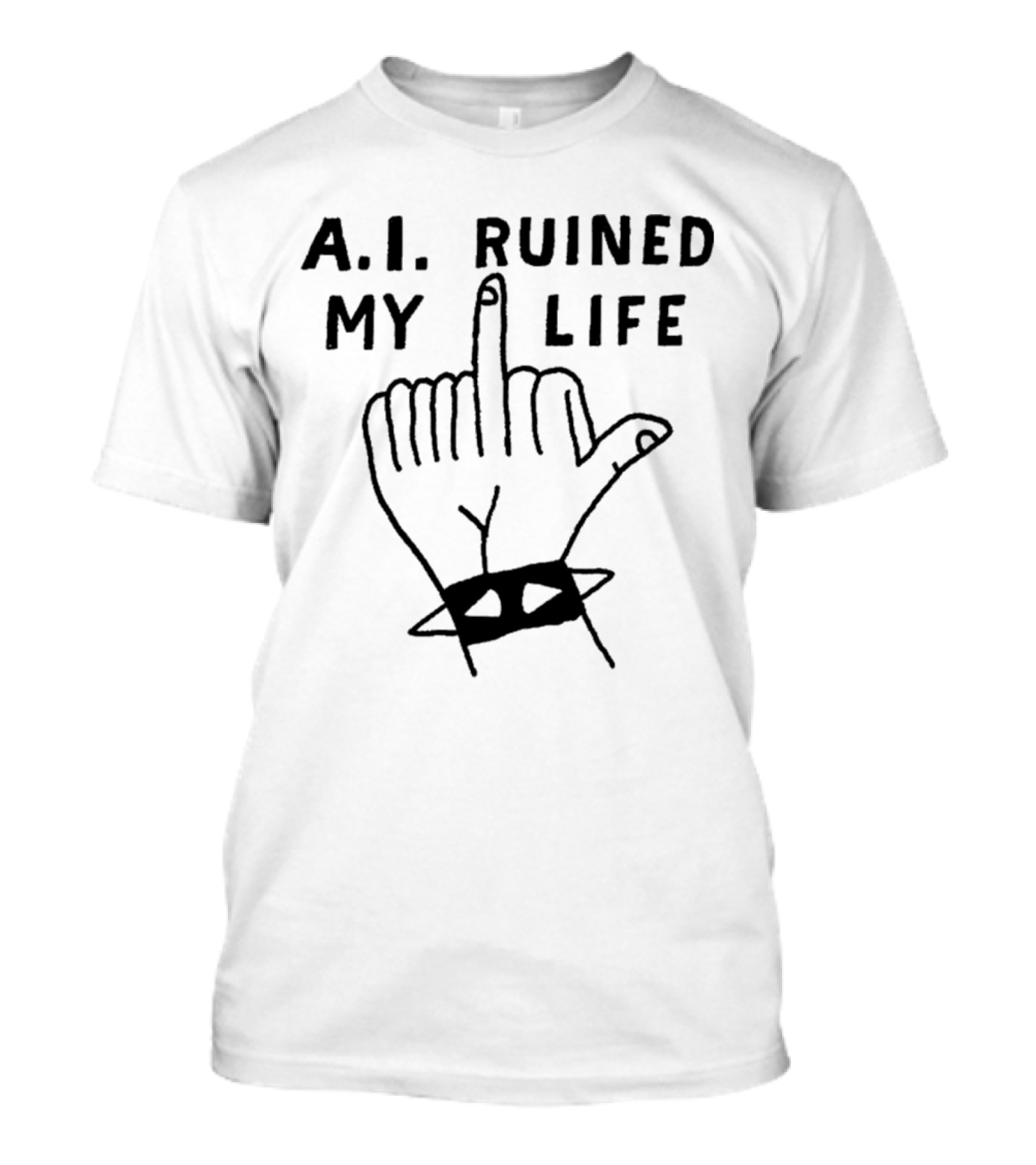 The A.I. Ruined My Life T-shirt is designed for everyday wear and a consistent fit. Fabric is pre-shrunk ring-spun cotton with durable stitching. See the size chart below for exact measurements.