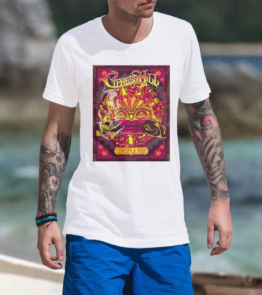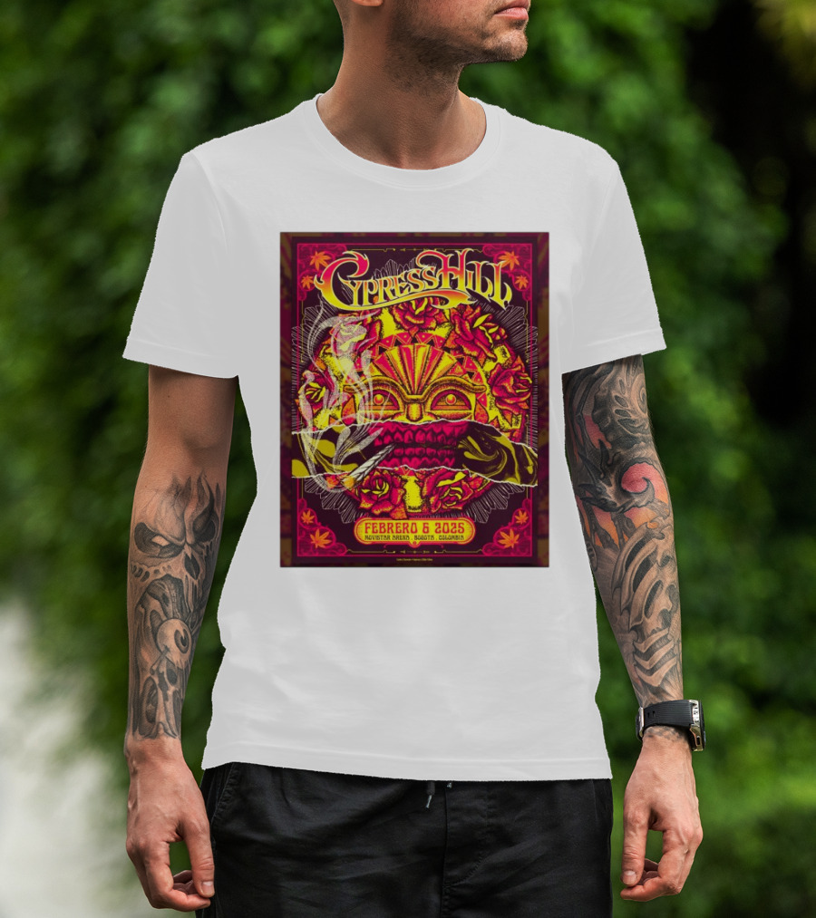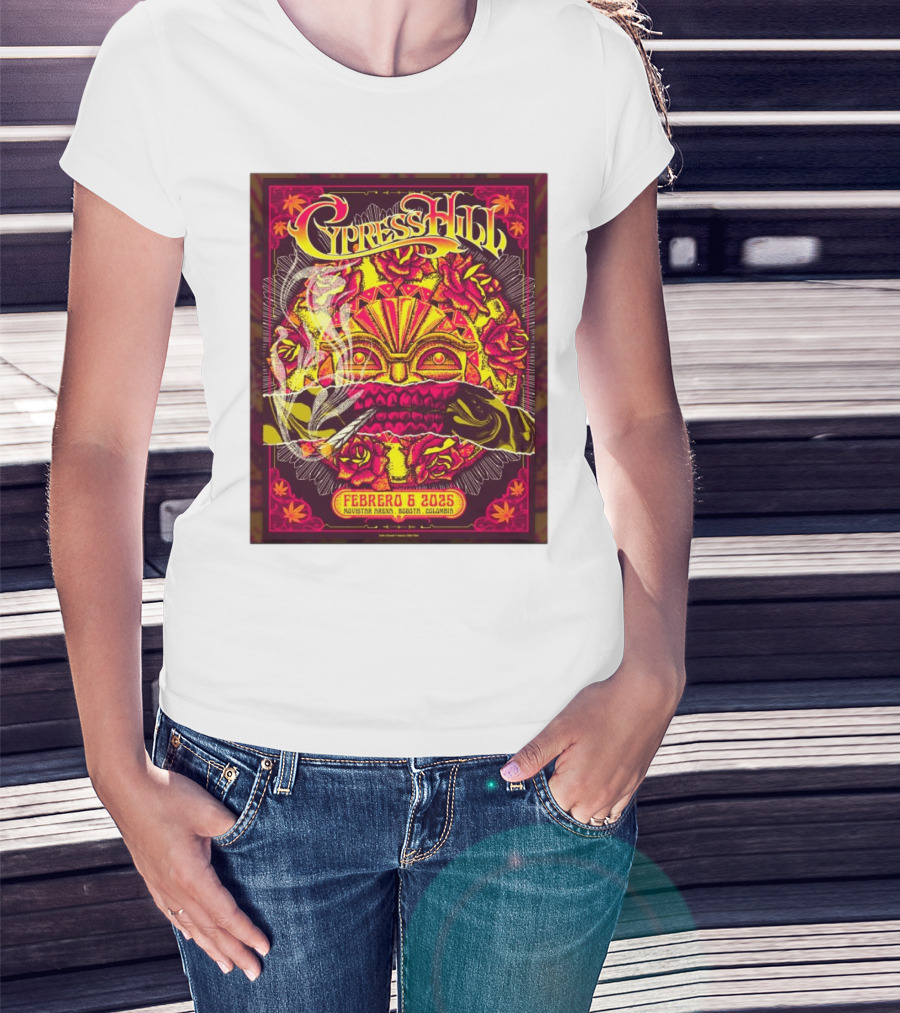 Cypress Hill Febrero 6 2025 Movistar Arena Bogotá Colombia Sun Mask Smoking Roses T-Shirt