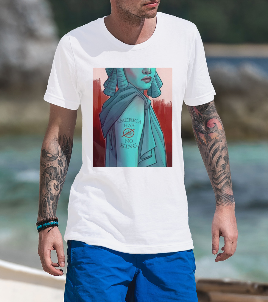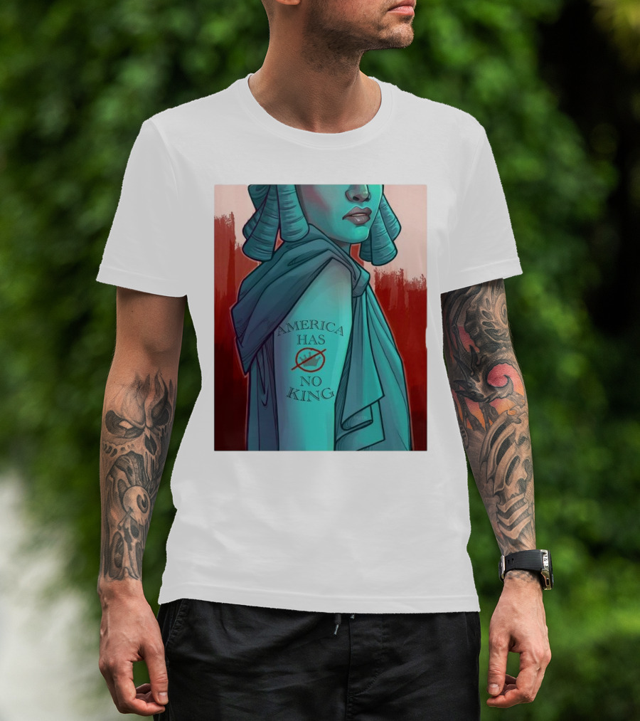 The America Has No King Lady Liberty 2025 T-shirt is designed for everyday wear and a consistent fit. Fabric is pre-shrunk ring-spun cotton with durable stitching. See the size chart below for exact measurements.
