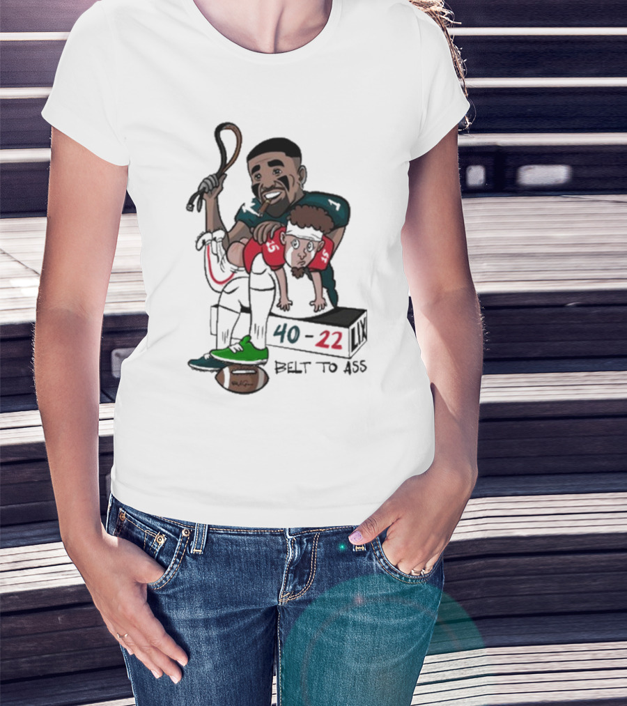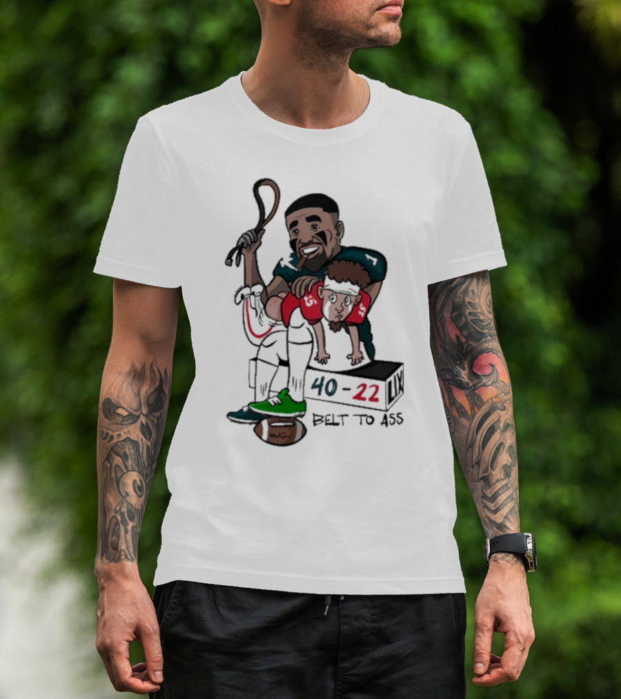Belt To Ass 40-22 Jalen Hurts Beats Patrick Mahomes Sports Cartoon T-Shirt