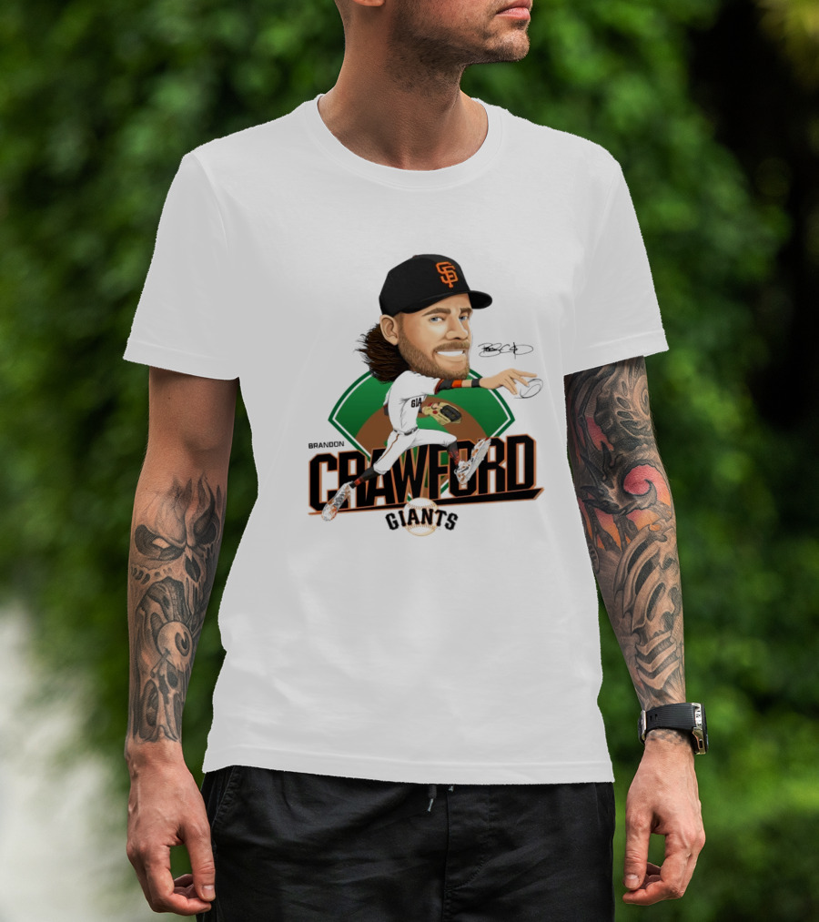 How much will this San Francisco Giants Brandon Crawford Caricature Celebrating Legendary Signature shirt shrink?
