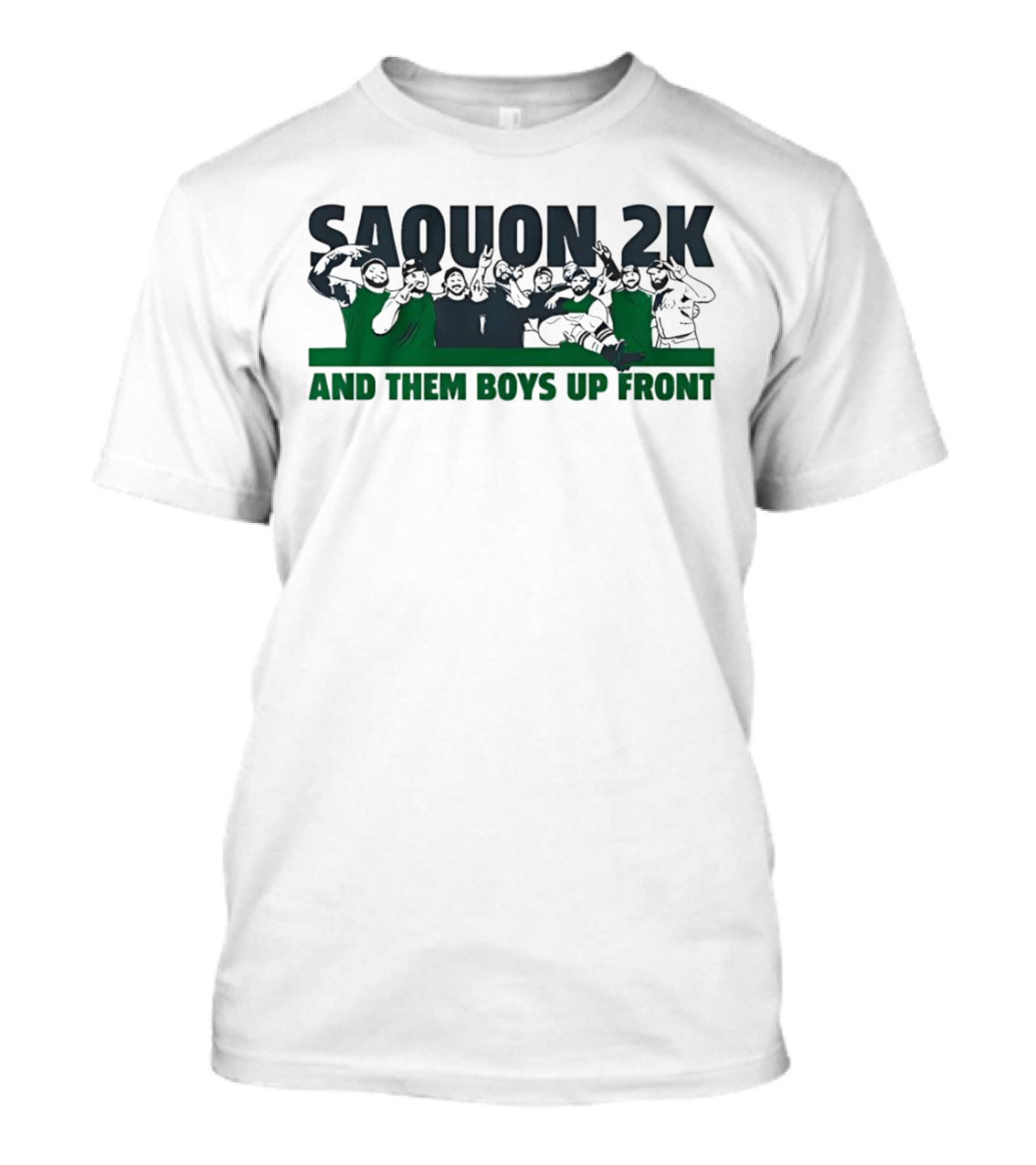 The SAQUON 2K and Them Boys Up Front Vintage T-shirt is designed for everyday wear and a consistent fit. Fabric is pre-shrunk ring-spun cotton with durable stitching. See the size chart below for exact measurements.