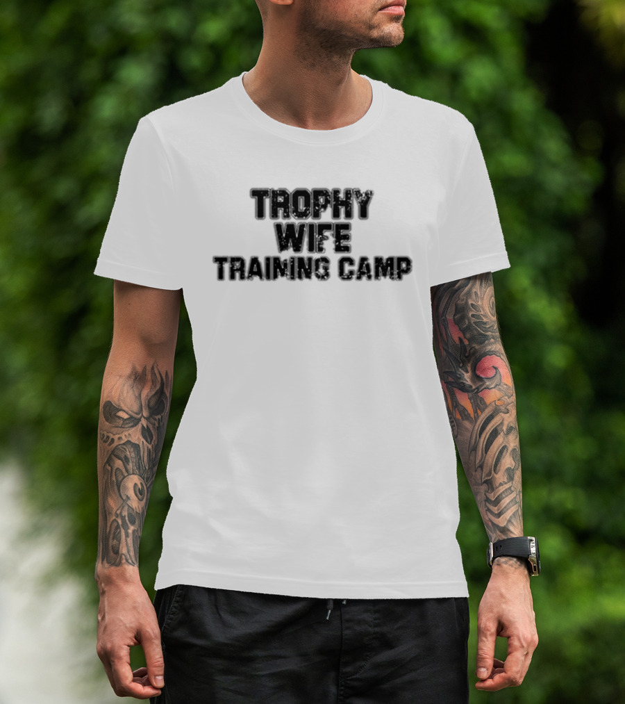 Trophy Wife Training Camp T-shirt — styled flat-lay, front print.