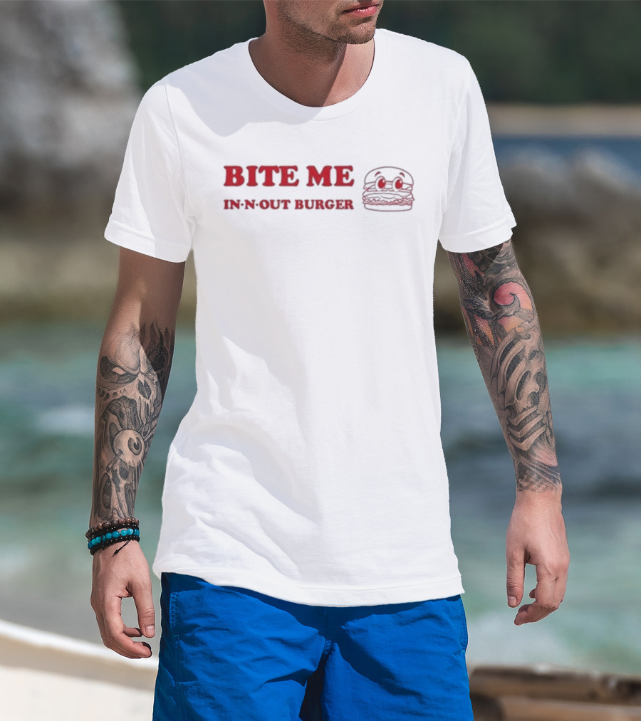 Bite Me In N Out Burger Funny Hamburger Sketch T-Shirt