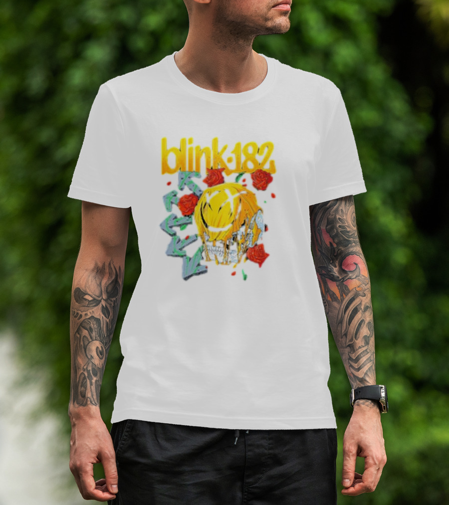 Blink 182 Skull Roses Dripping Yellow Paint T-Shirt