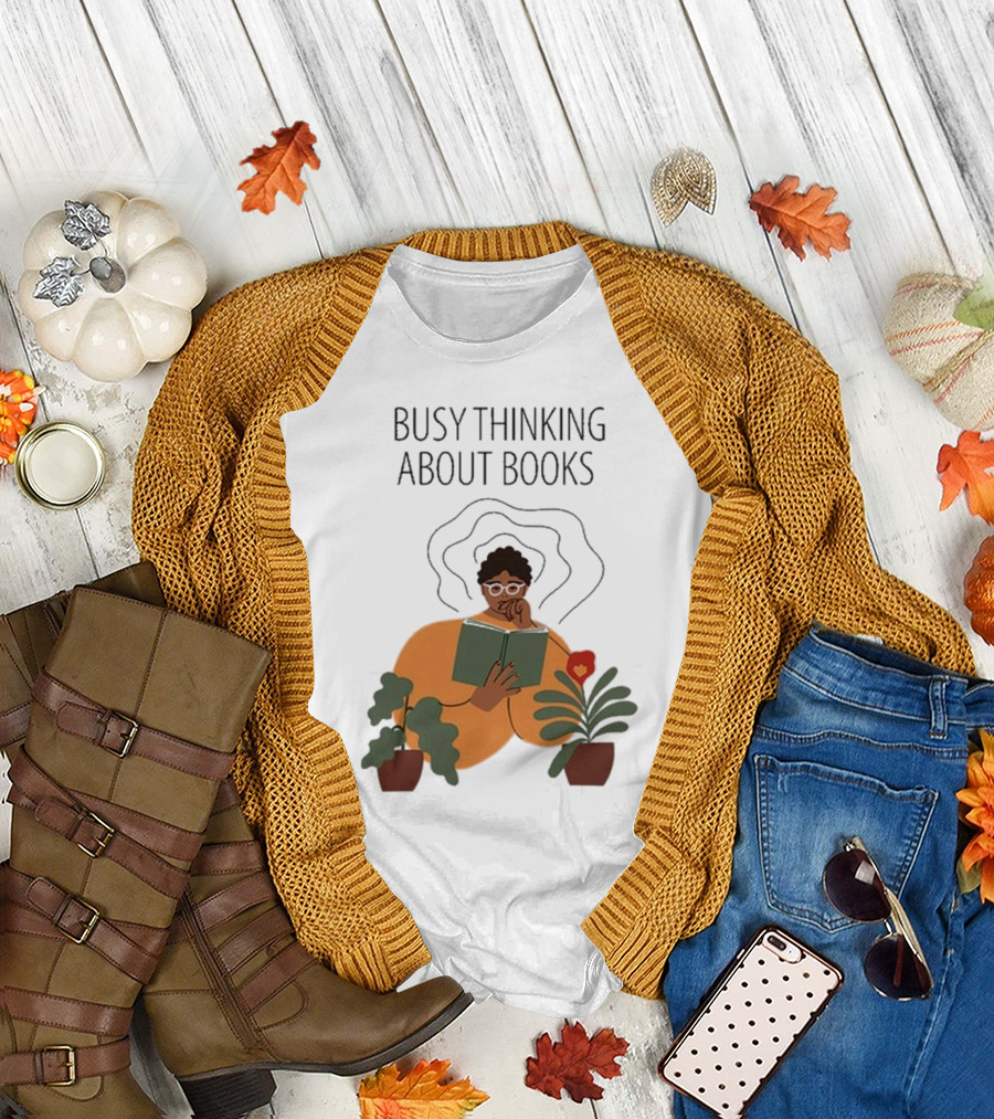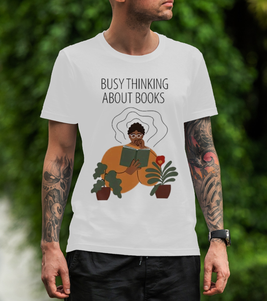 The Busy Thinking About Books T-shirt is designed for everyday wear and a consistent fit. Fabric is pre-shrunk ring-spun cotton with durable stitching. See the size chart below for exact measurements.
