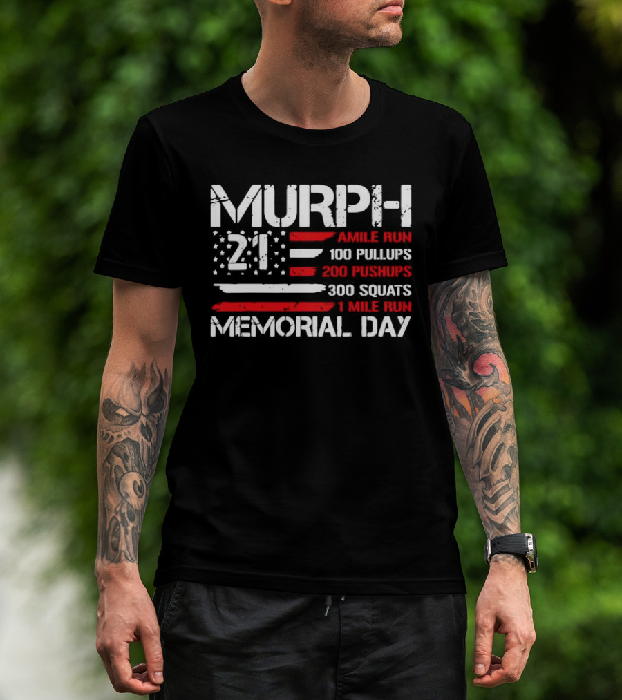 Murph 21 Memorial Day Workout Tribute 1 Mile Run 100 Pullups 200 Pushups 300 Squats T-Shirt