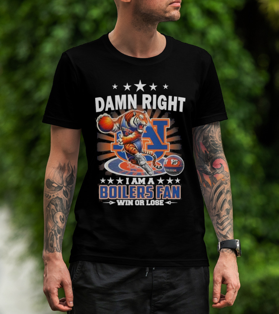 Damn Right I Am A Auburn Tigers Basketball Mascot Fan Win Or Lose 2025 T-Shirt