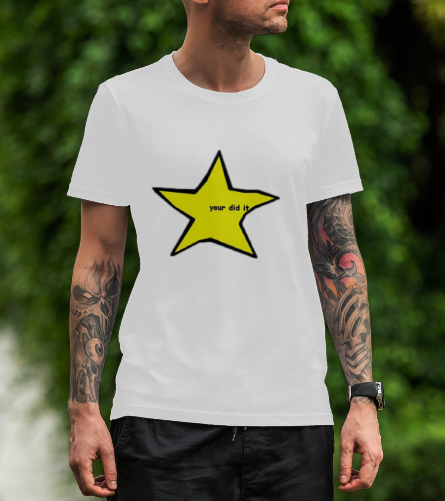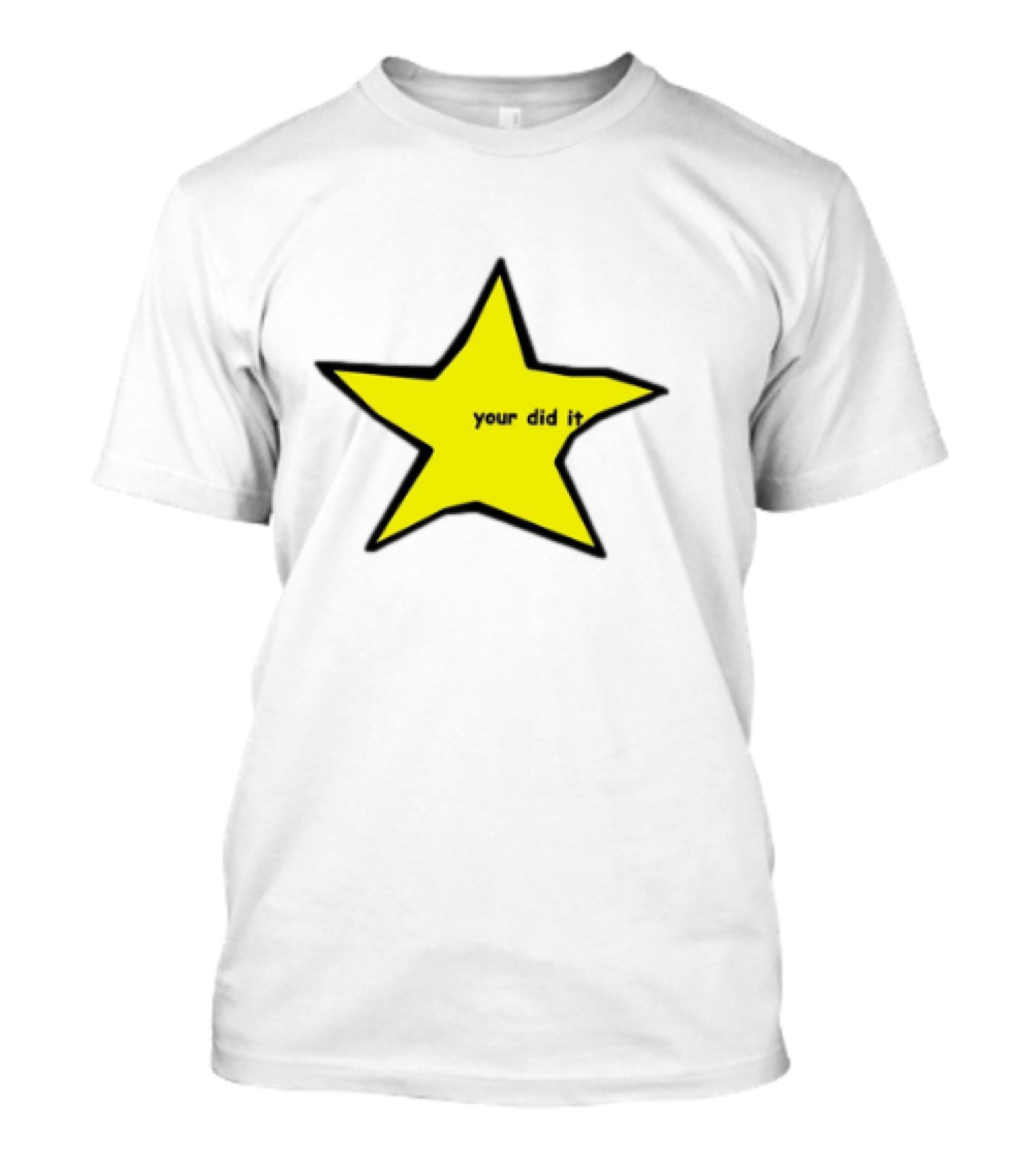 The Your Did It Star T-shirt is designed for everyday wear and a consistent fit. Fabric is pre-shrunk ring-spun cotton with durable stitching. See the size chart below for exact measurements.