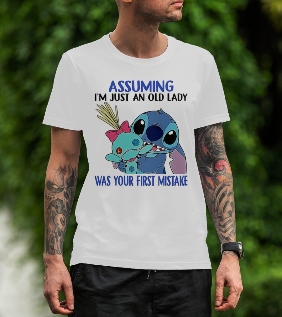 The Assuming I'm Just an Old Lady Was Your First Mistake Stitch Holding Voodoo Doll T-shirt is designed for everyday wear and a consistent fit. Fabric is pre-shrunk ring-spun cotton with durable stitching. See the size chart below for exact measurements.