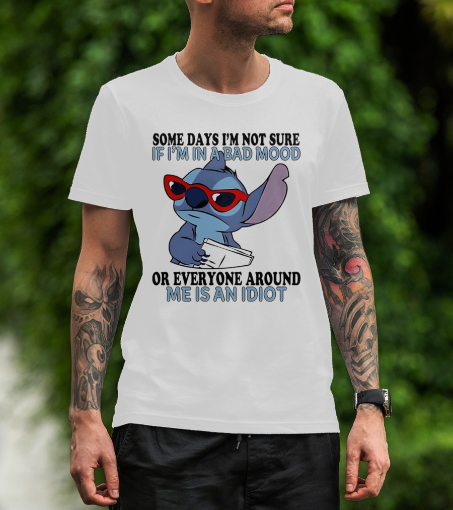 Stitch Some Days I’m Not Sure If I’m In A Bad Mood Or Everyone Around Me Is An Idiot Red Sunglasses T-Shirt