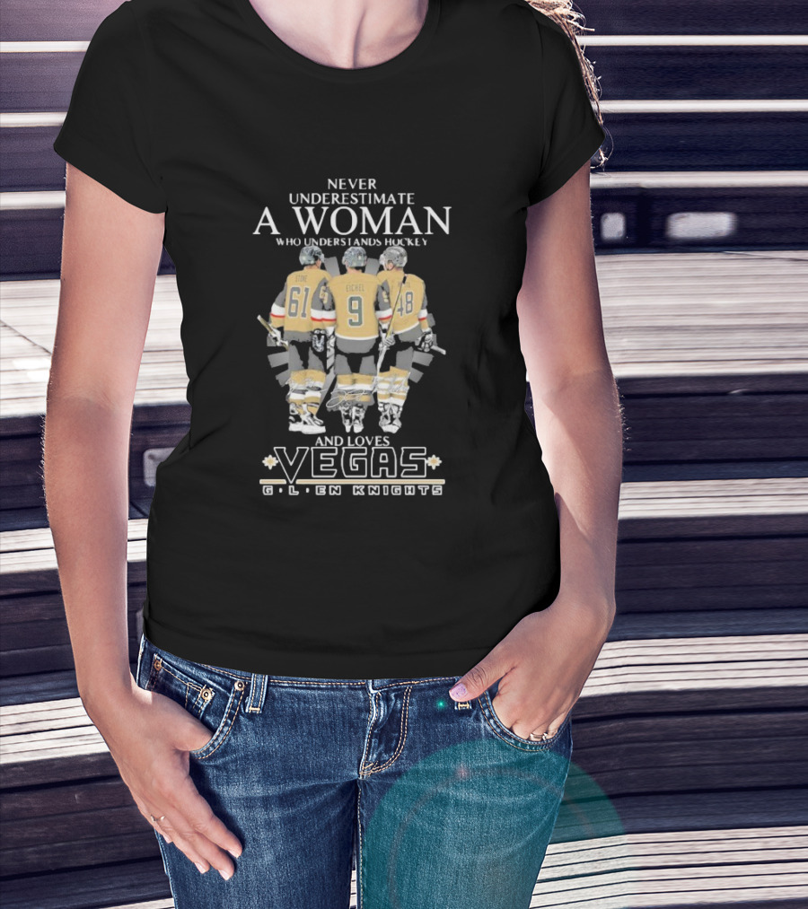Never Underestimate A Woman Who Understands Hockey Stone Eichel Loves Vegas Golden Knights T-Shirt