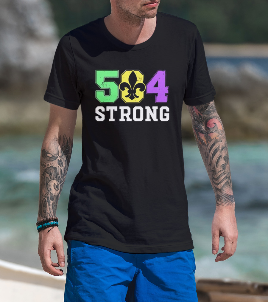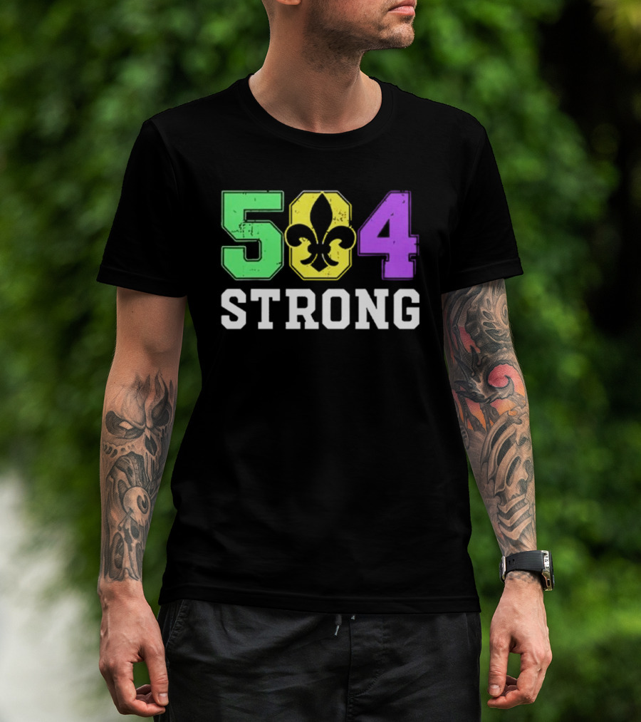 New Orleans 504 Strong Fleur-de-Lis Green Yellow Purple T-Shirt