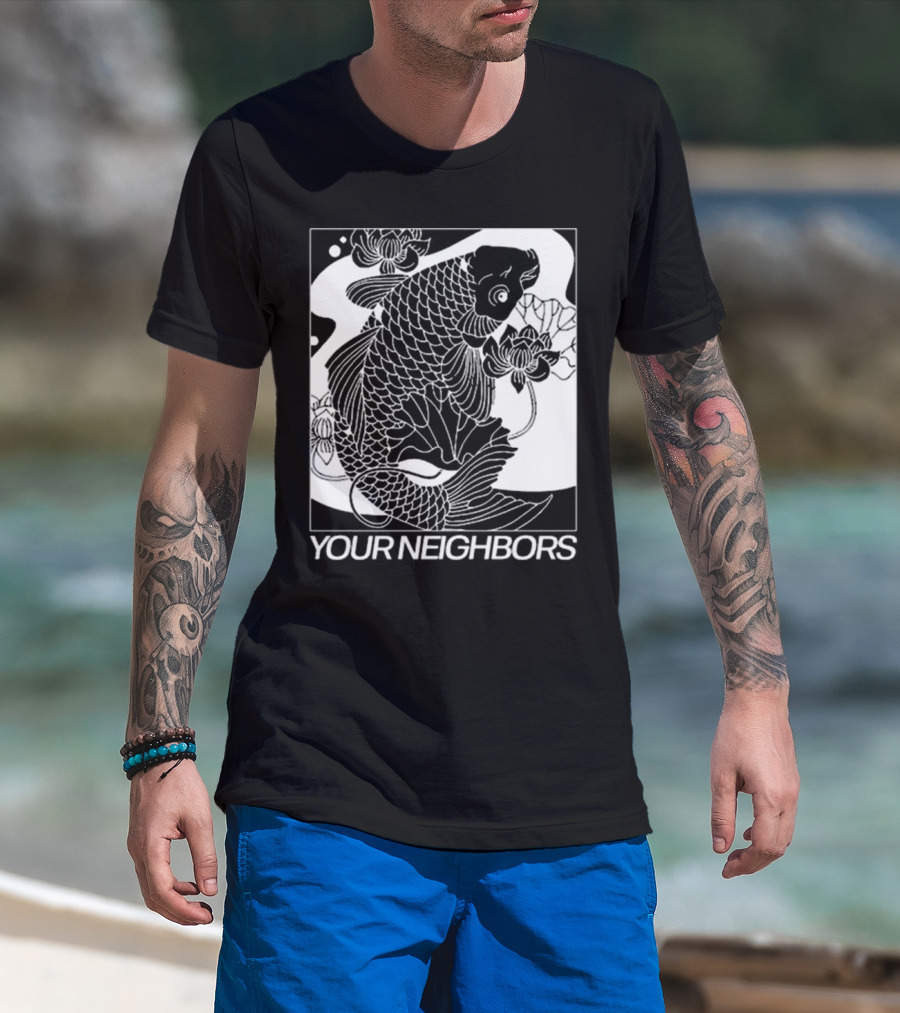 The Down Right Your Neighbors Koi T-shirt is designed for everyday wear and a consistent fit. Fabric is pre-shrunk ring-spun cotton with durable stitching. See the size chart below for exact measurements.