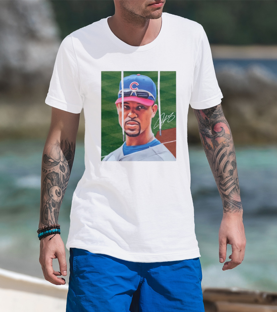 Chicago Cubs Derrek Lee Signature Portrait With Cap And Sunglasses T-Shirt