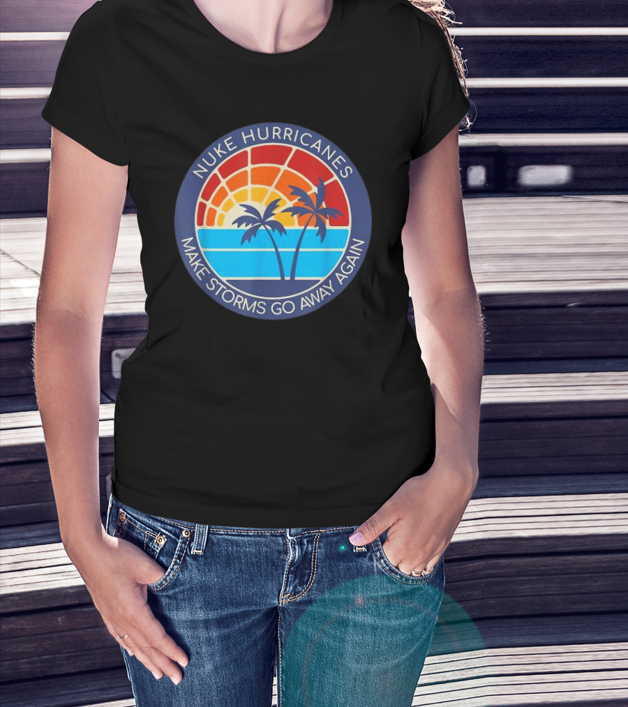 How much will this Nuke Hurricanes Make Storms Go Away Again Retro Sunset Palms shirt shrink?