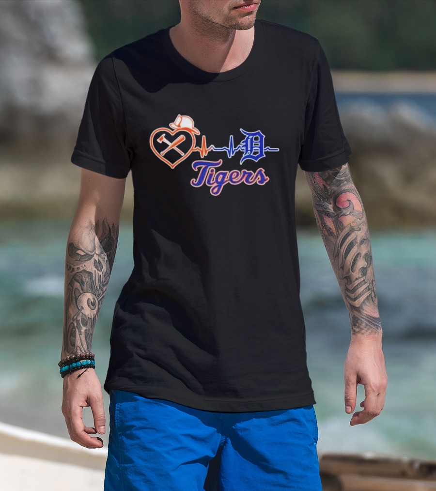 Firefighter Detroit Tigers Heartbeat T-Shirt