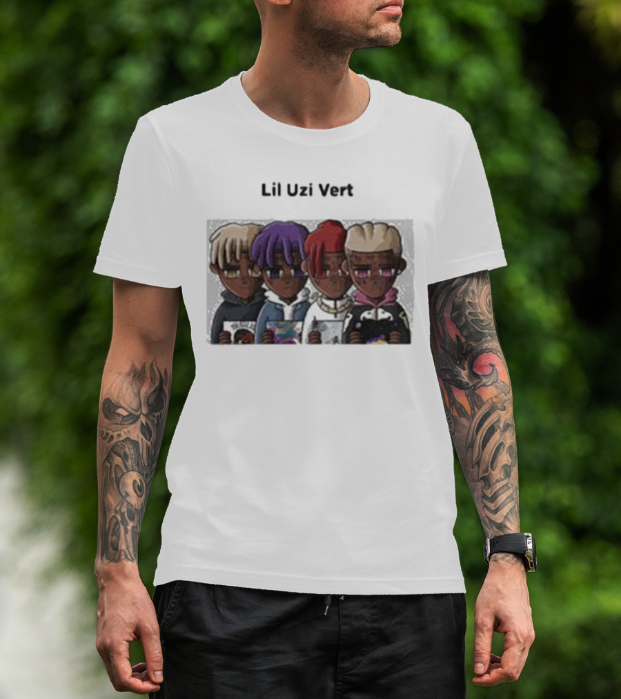 The Lil Uzi Vert Evolution Cartoon Characters Holding Albums T-shirt is designed for everyday wear and a consistent fit. Fabric is pre-shrunk ring-spun cotton with durable stitching. See the size chart below for exact measurements.