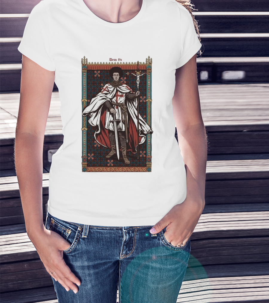 Fr Robinson Crusader Knight Medieval Tapestry Sporting Sword And Cross T-Shirt