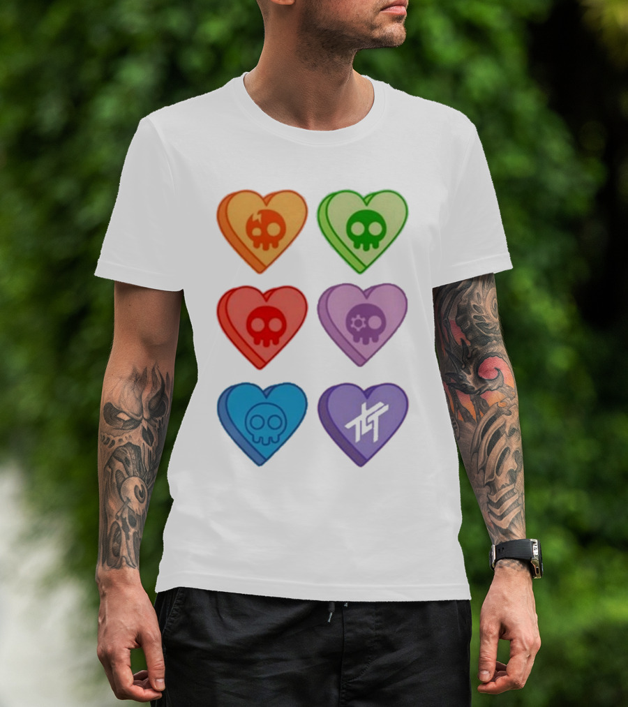 The Living Tombstone Colorful Candy Hearts Skull Motif Baby Doll T-Shirt