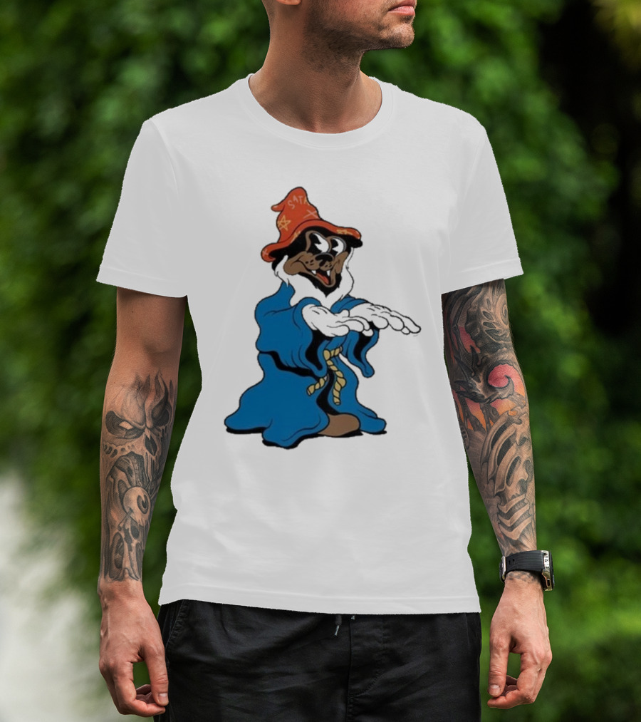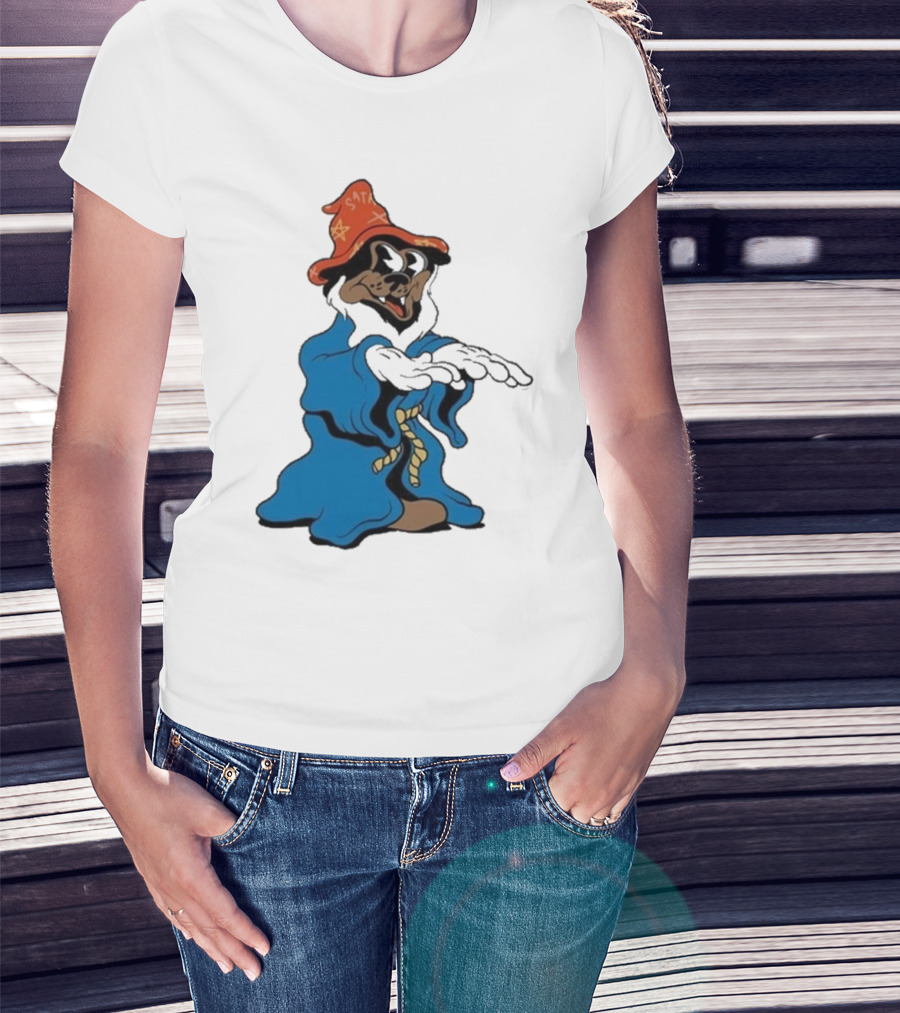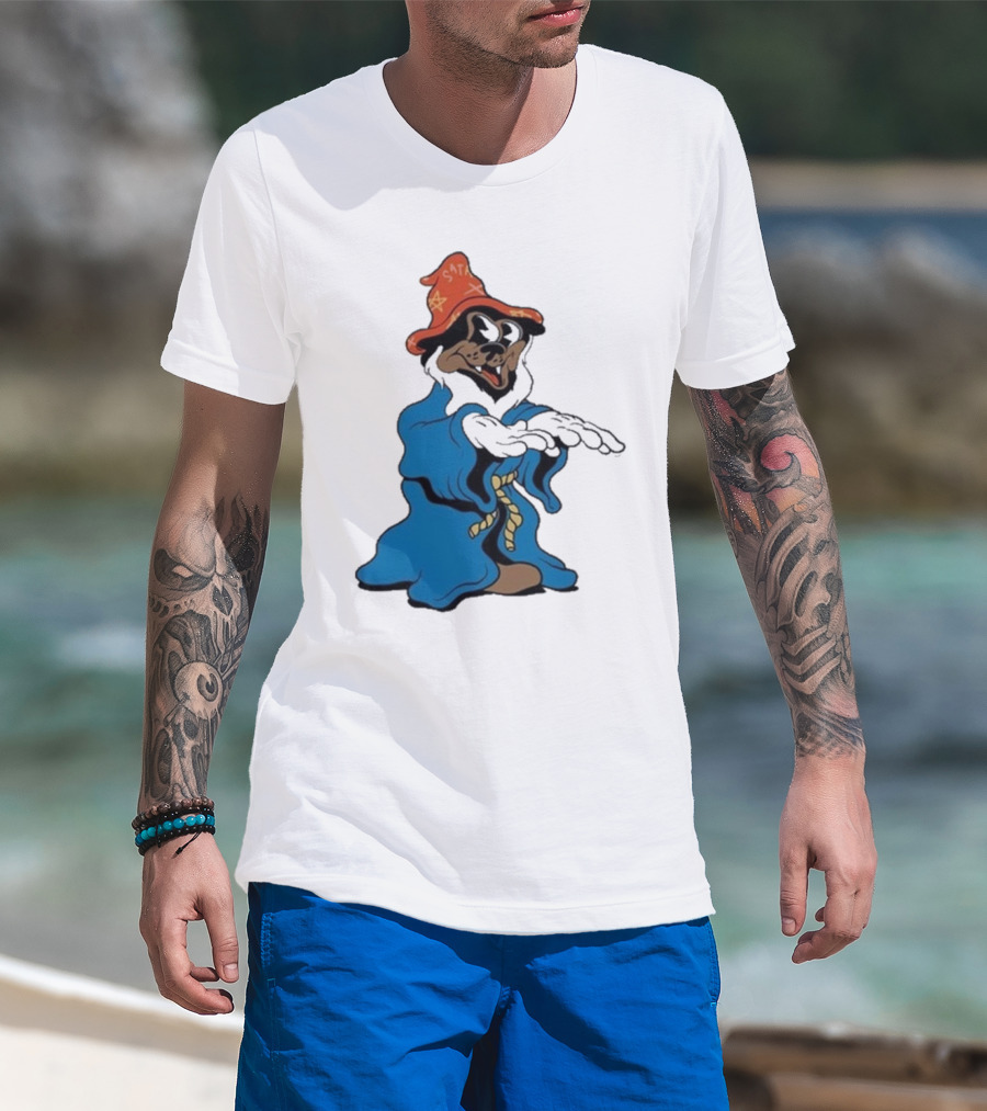 The Dudes It’s All Wavy Wizard Dog In Blue Robe With Orange Star Hat T-Shirt