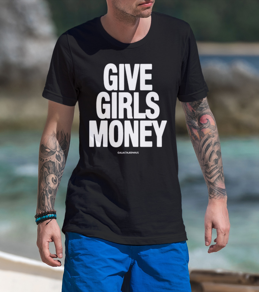 The Give Girls Money Galactajeeniius T-shirt is designed for everyday wear and a consistent fit. Fabric is pre-shrunk ring-spun cotton with durable stitching. See the size chart below for exact measurements.