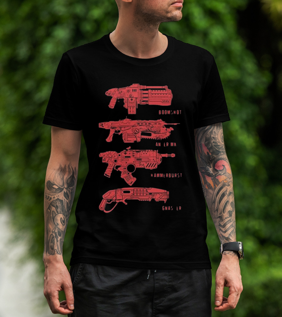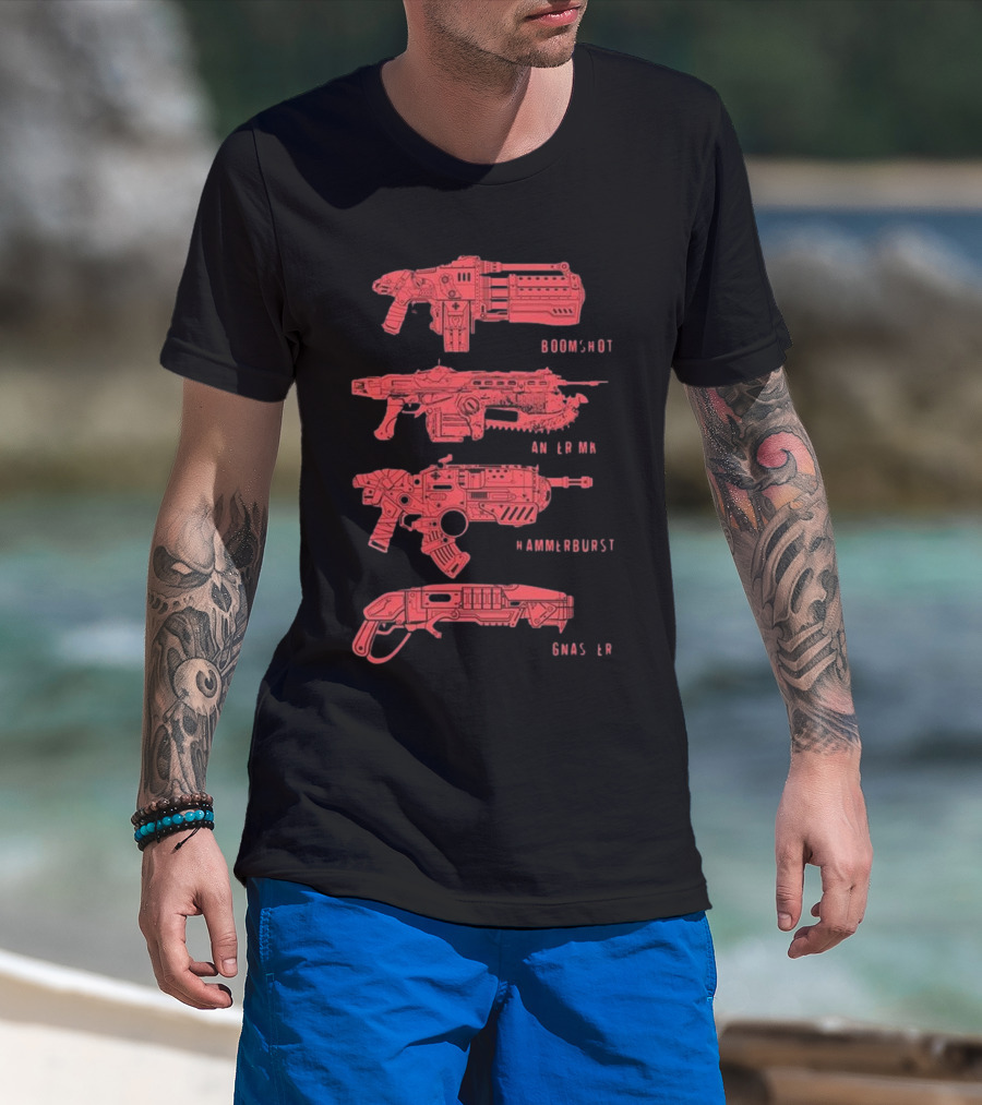 Gears Of War Boomshot Lancer Mk II Hammerburst Gnasher Weapon Stack T-Shirt