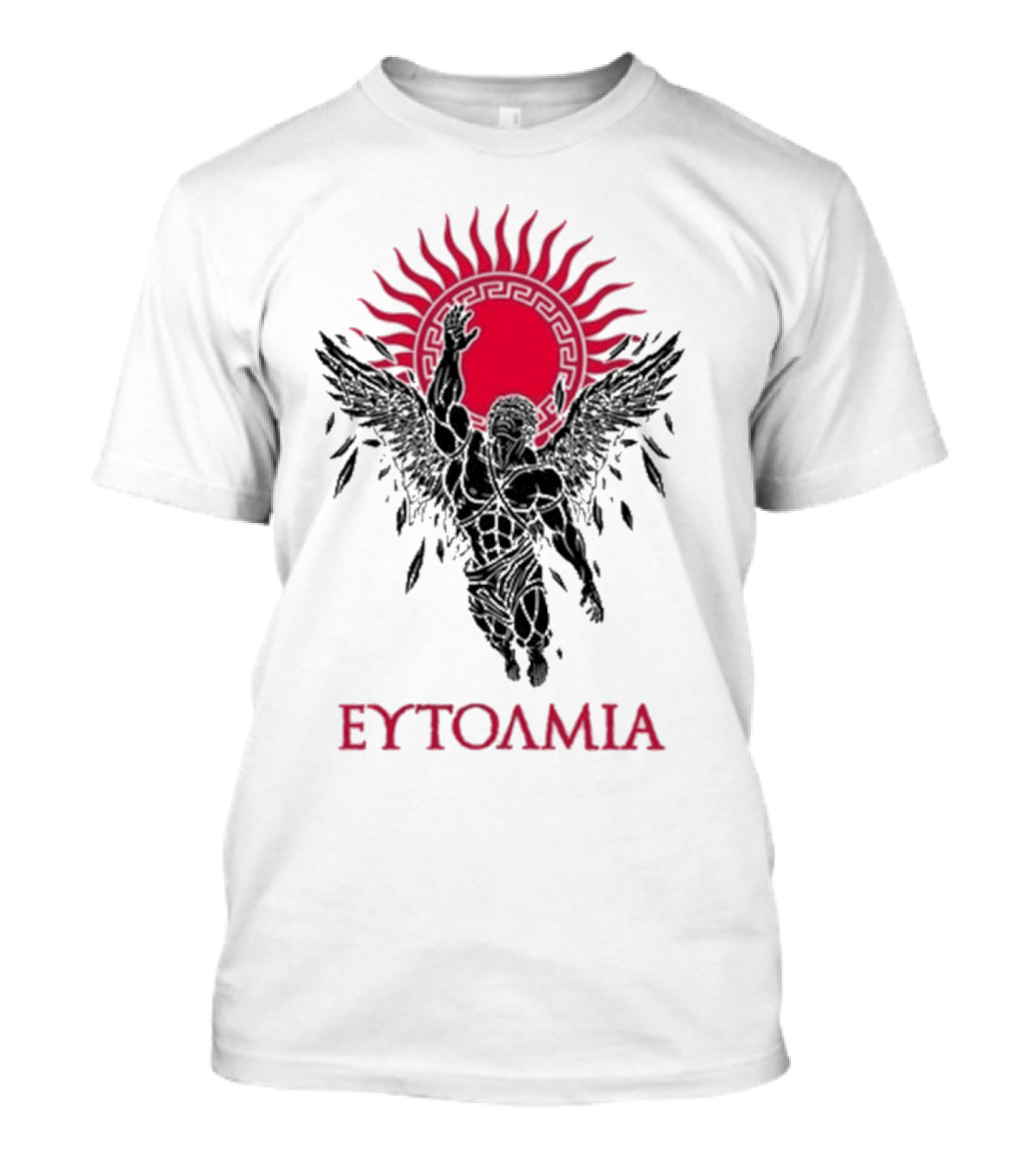 The Ευτολμια Fearless Winged Figure with Radiant Sun Symbol T-shirt is designed for everyday wear and a consistent fit. Fabric is pre-shrunk ring-spun cotton with durable stitching. See the size chart below for exact measurements.