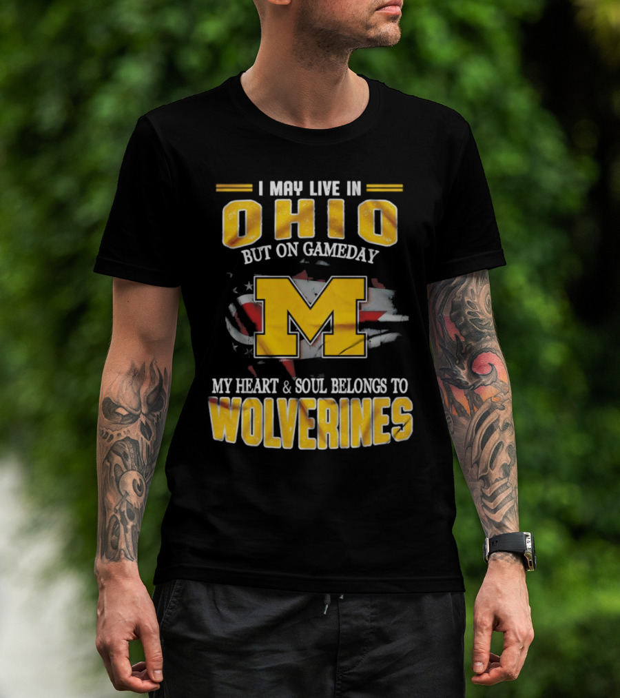 I May Live In Ohio But On Gameday My Heart And Soul Belongs To Wolverines T-Shirt