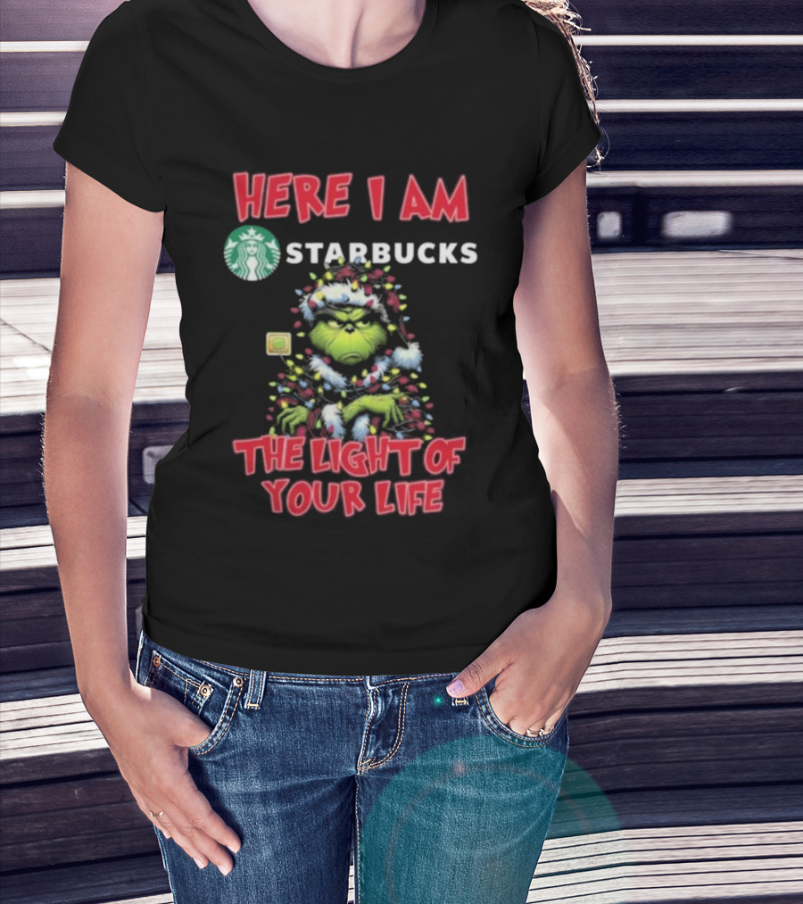 Here I Am Starbucks Grinch The Light Of Your Life Christmas T-Shirt