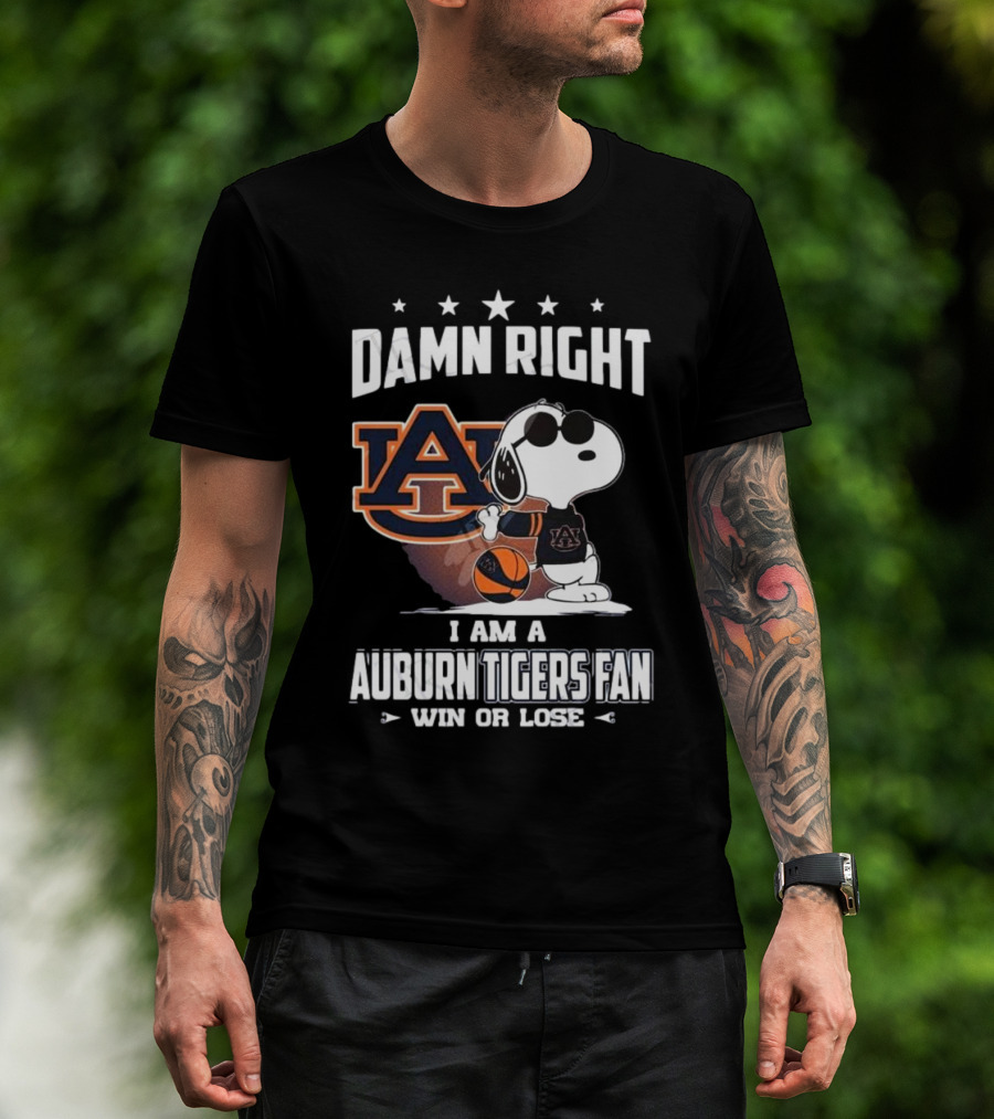 Damn Right I Am A Auburn Tigers Fan Win Or Lose Snoopy Auburn Logo T-Shirt