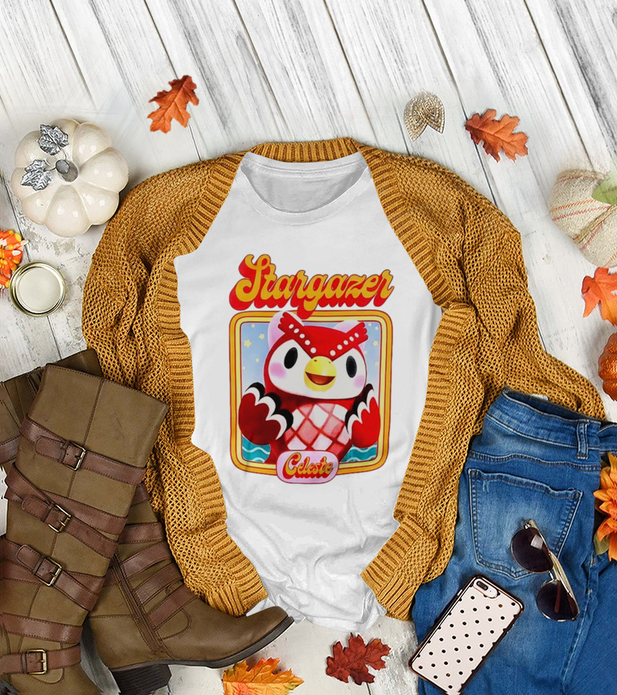Stargazer Celeste Owl Character With Stars And Ocean Scene T-Shirt
