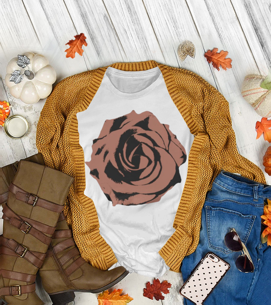 The A Flair For The Dramatic Rose Black and Pink Graphic T-shirt is designed for everyday wear and a consistent fit. Fabric is pre-shrunk ring-spun cotton with durable stitching. See the size chart below for exact measurements.