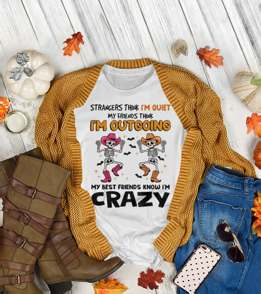Strangers Think I'm Quiet Friends Think I'm Outgoing Best Friends Know I'm Crazy Skeleton Cowboy Dance T-Shirt