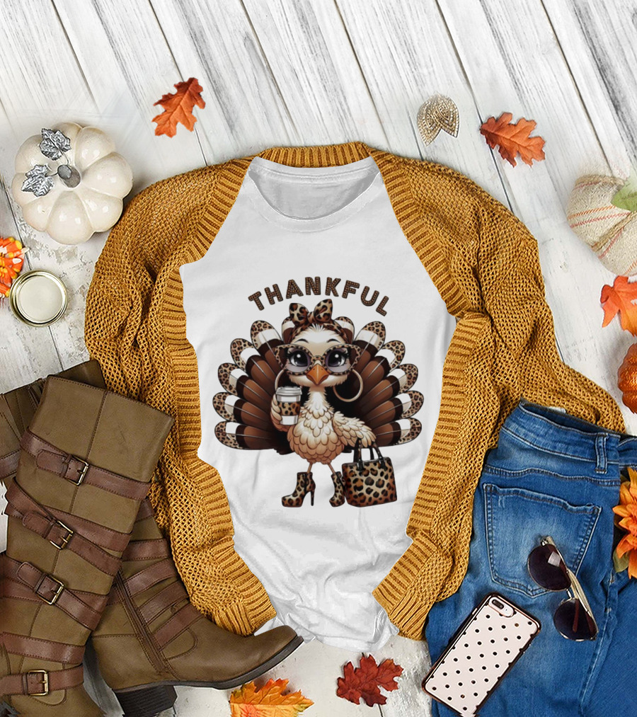 Thankful Leopard Print Turkey Coffee Lover Fashionista T-Shirt