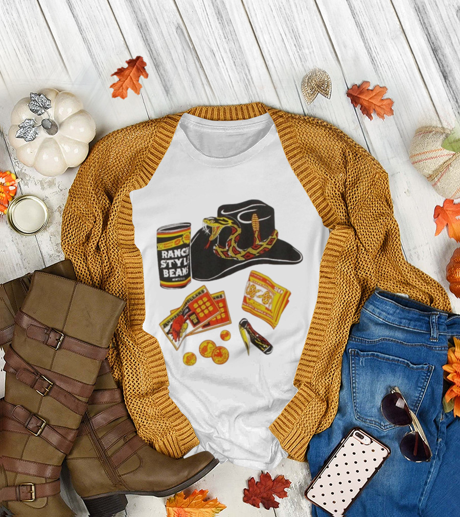 Ranch Style Beans Can Rattlesnake Cowboy Hat Texas Symbols Imagery T-Shirt