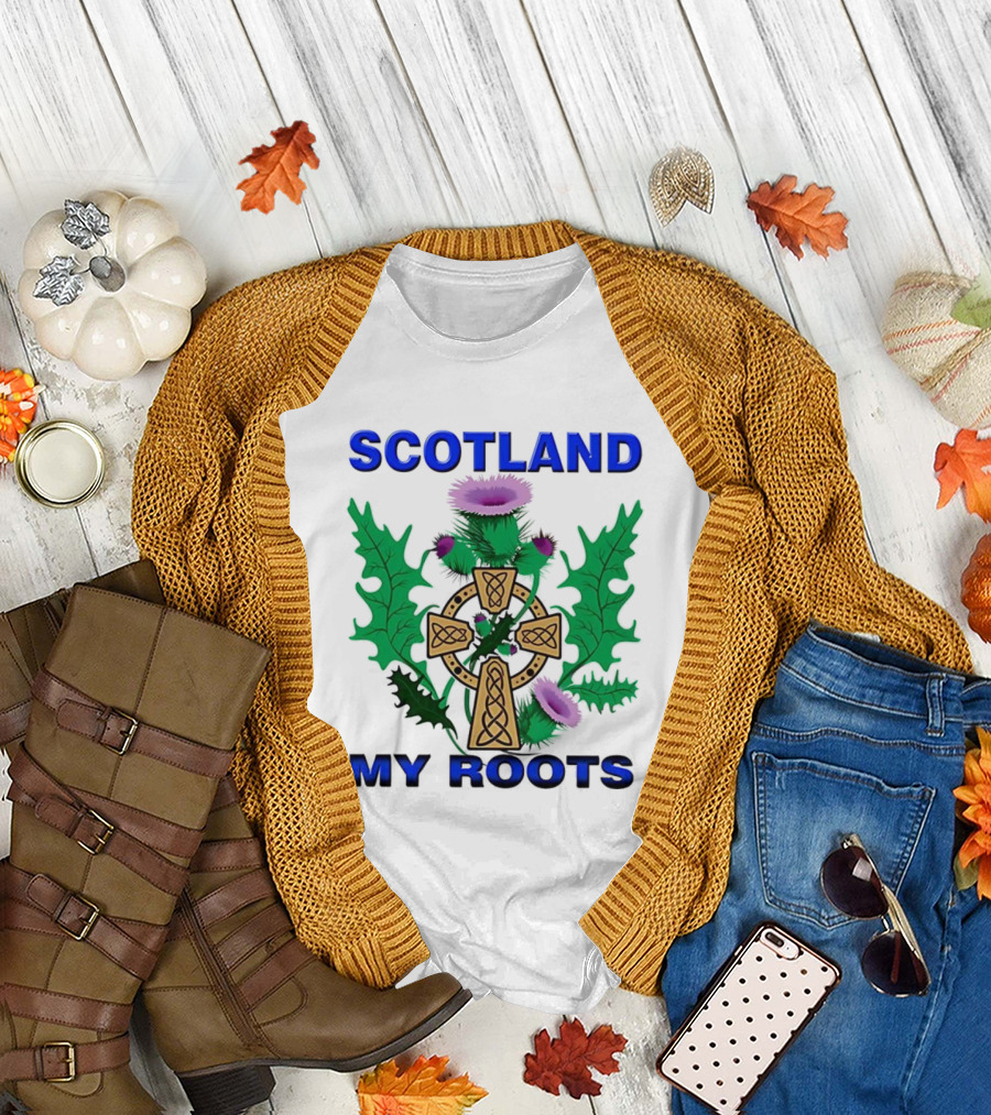 Scotland My Roots Celtic Cross Purple Thistle Heritage T-Shirt