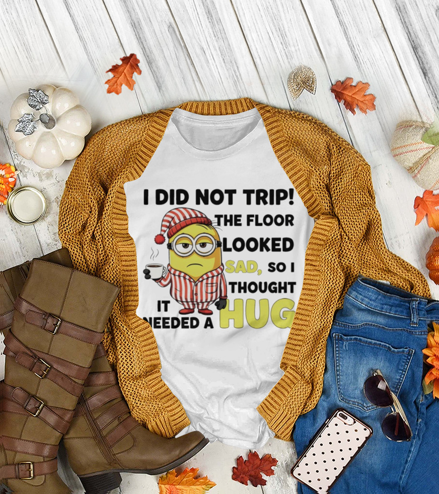 Minion Pajamas Coffee I Did Not Trip Floor Looked Sad Needed A Hug T-Shirt