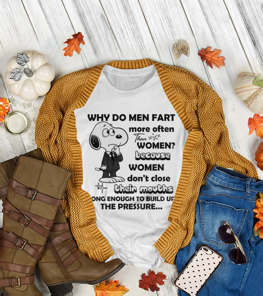 Snoopy Why Do Men Fart More Often Than Women Because Women Don’t Close Their Mouths Long Enough T-Shirt