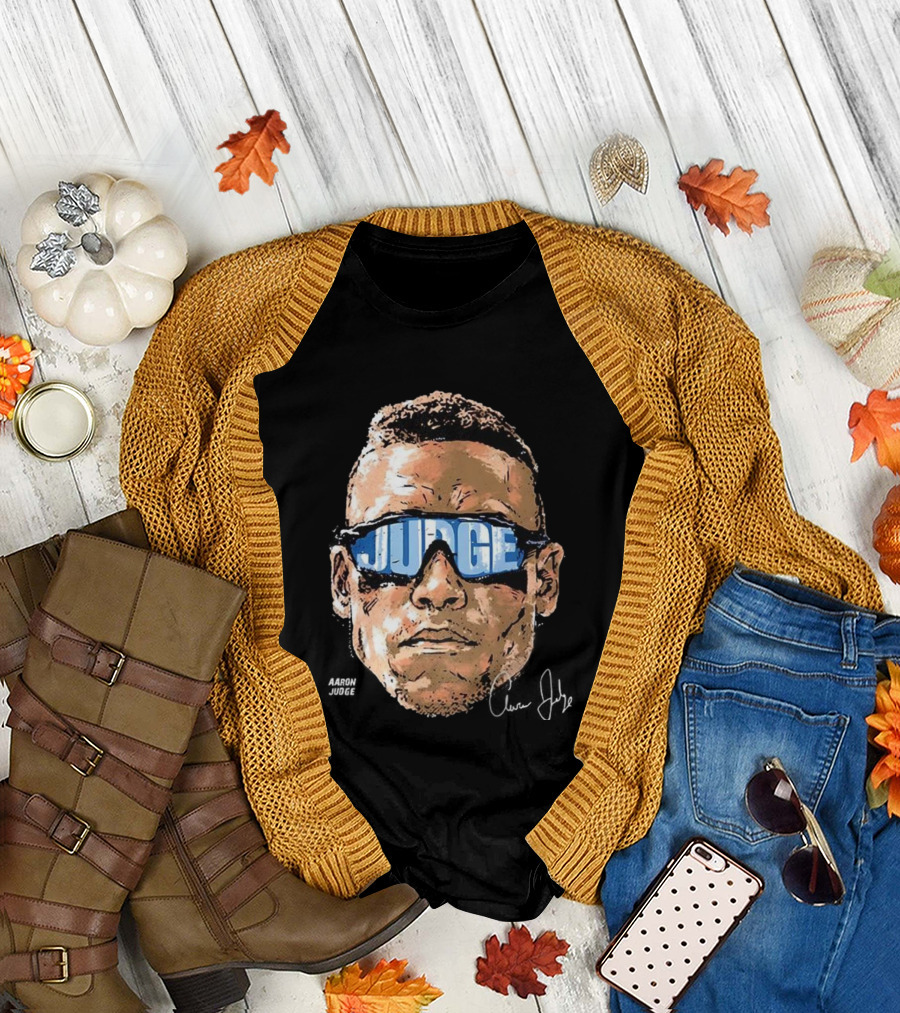 Aaron Judge New York Yankees Baseball Big Head Glasses Judge Signature T-Shirt