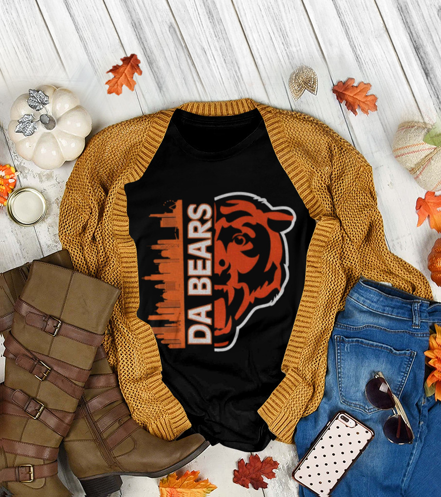 Da Bears Chicago Football City Skyline Bear Head T-Shirt