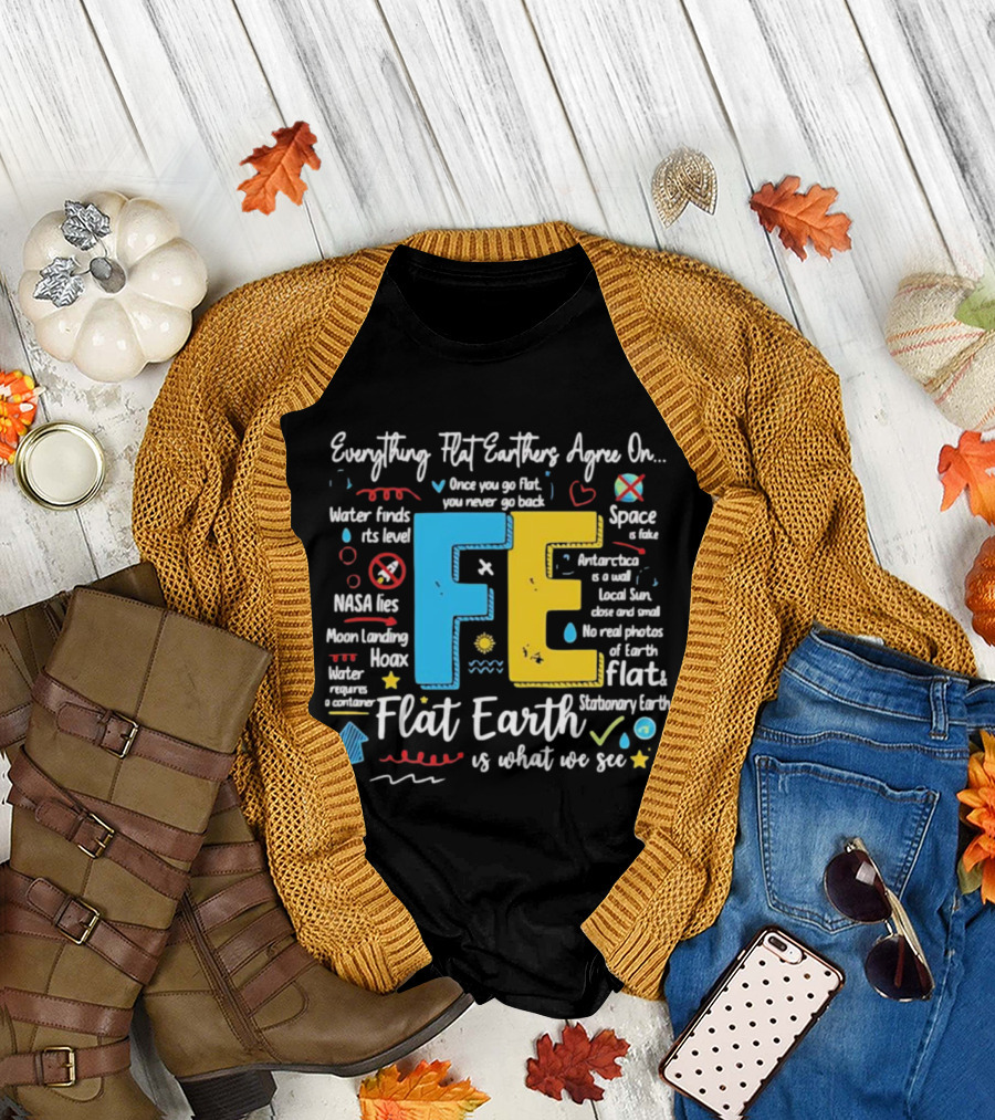 Everything Flat Earthers Agree On Water Finds Its Level Flat Earth T-Shirt