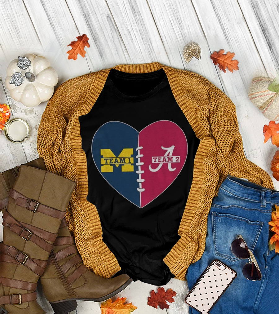 Heart Divided Michigan Wolverines Team 1 Vs Alabama Crimson Tide Team 2 T-Shirt
